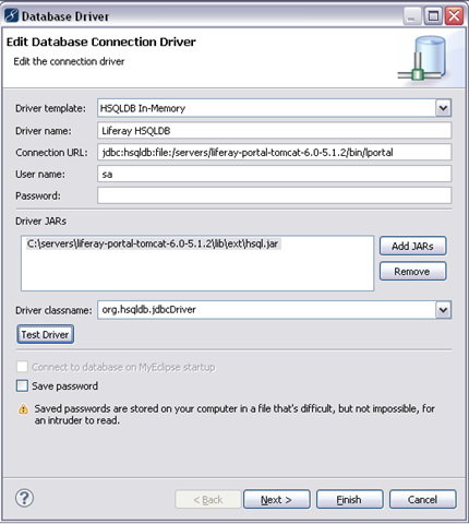- The screenshot assumes the liferay/tomcat bundle is installed at /servers. Change your url to the correct location for your server. Later versions of liferay have the db in a different directory, so if you’re not on 5.1.2, you also may have to change from the bin directory to your db directory (see the connection information in root.xml if you’re not sure where it is).
