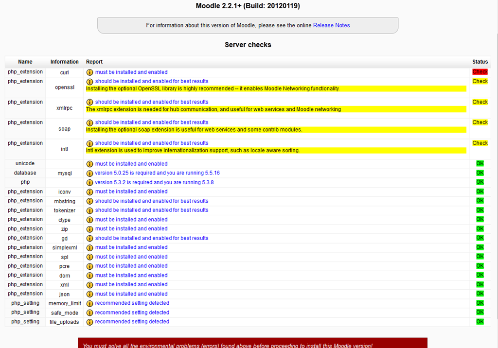 Go to PHP > PHP extensions. Check the name of each missing extension, 1 at a time. (It appears that WampServer will restart after each install). When you’re done, go back to your browser and click Reload at the very bottom of the page.